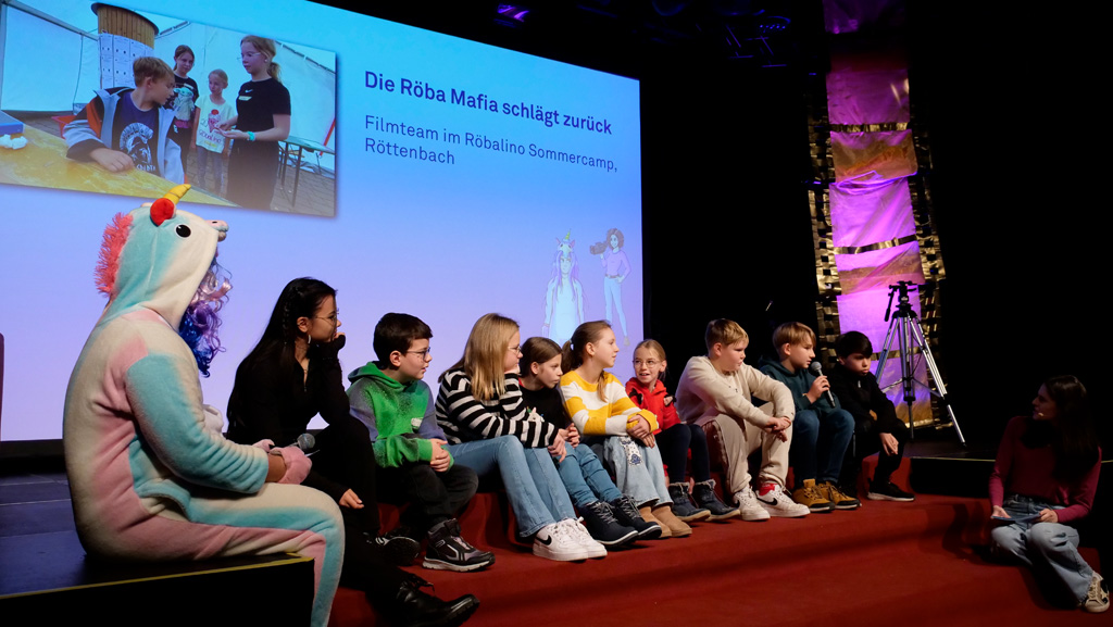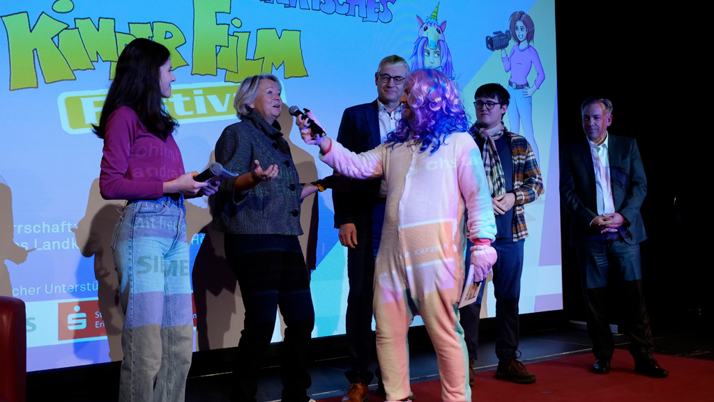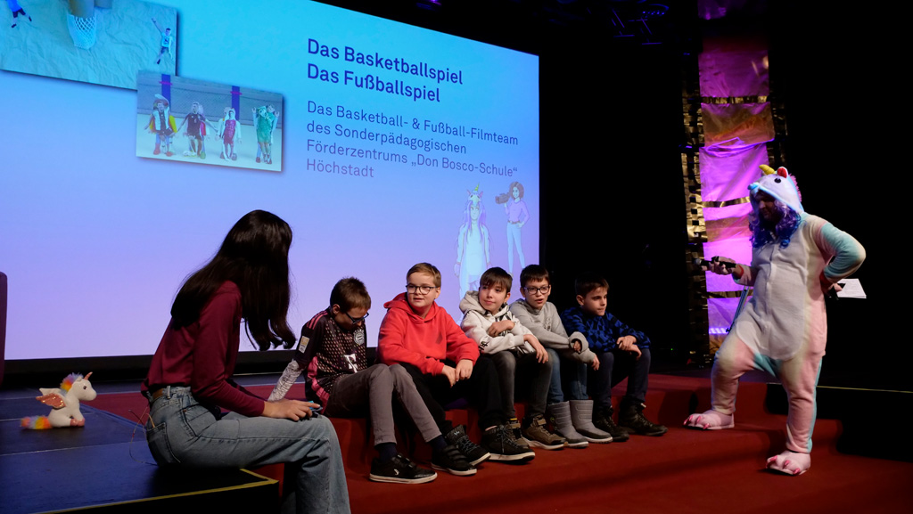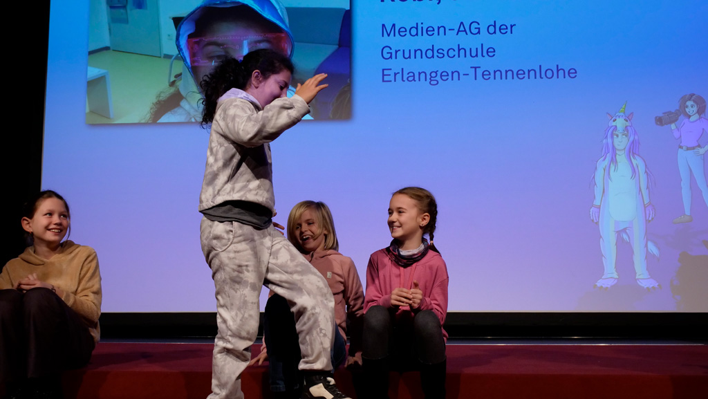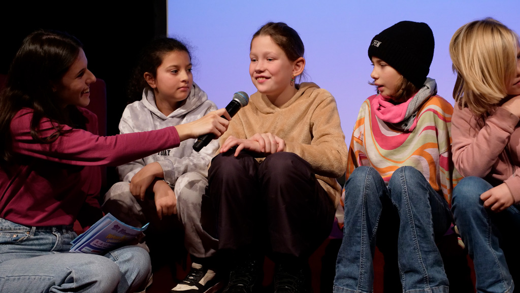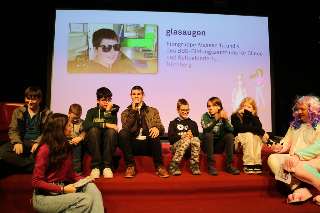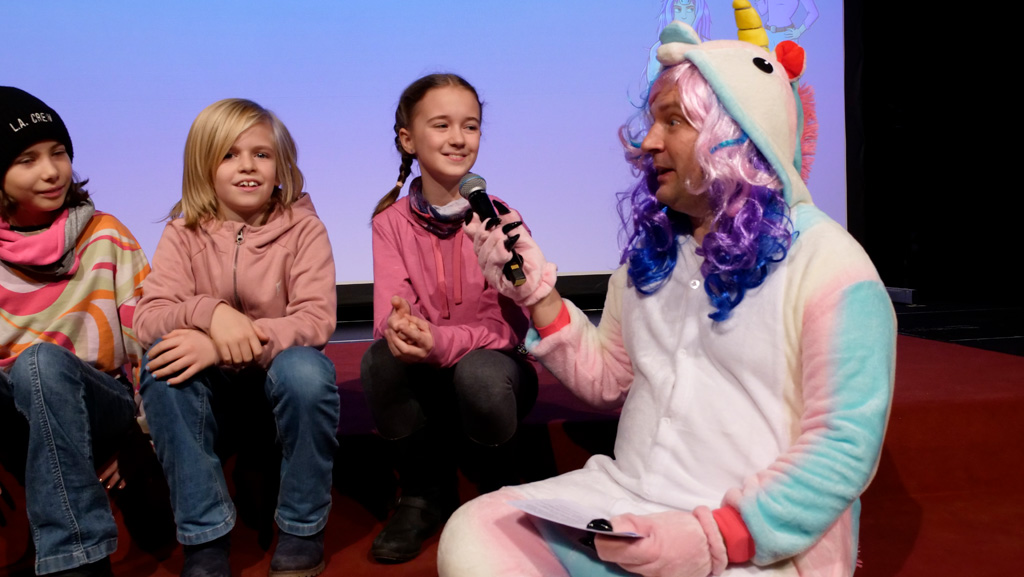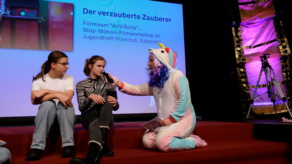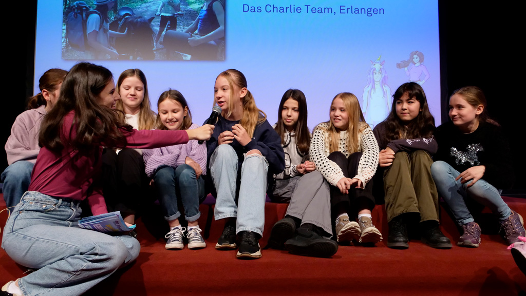 Zahlreiche Filmgruppen berichteten von ihren Filmproduktionen und insgesamt 27 Filme von Kindern für Kinder wurden auf der großen Leinwand präsentiert. Eingerahmt in einen actionreiches Moderationsprogramm, bei dem die Kinder im Saal zum Mitmachen animiert wurden, und laut bei der T-Shirt-Challanges der VIPs mitzählten.