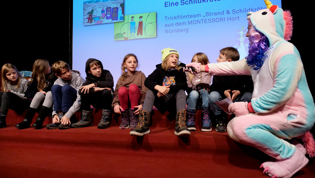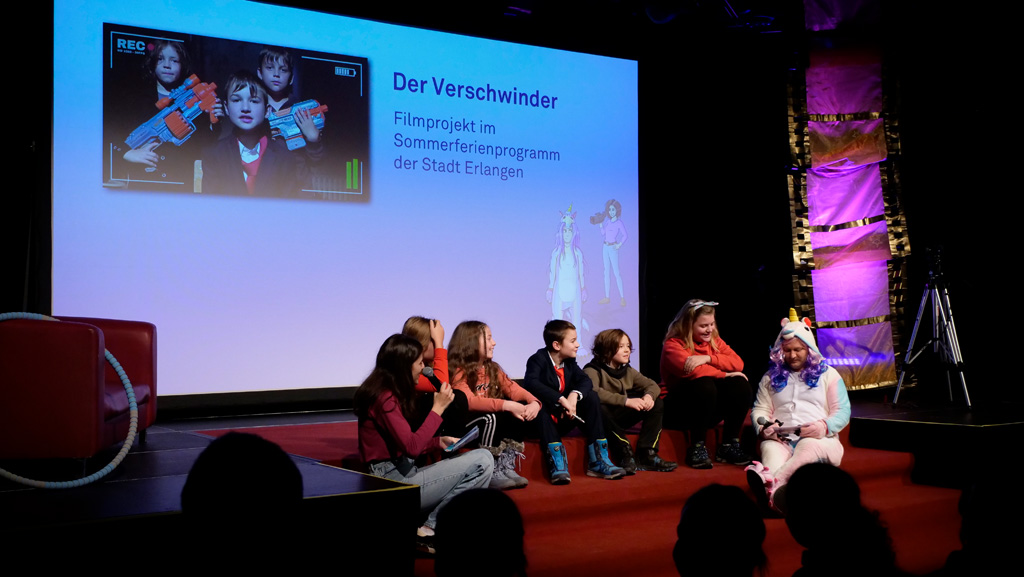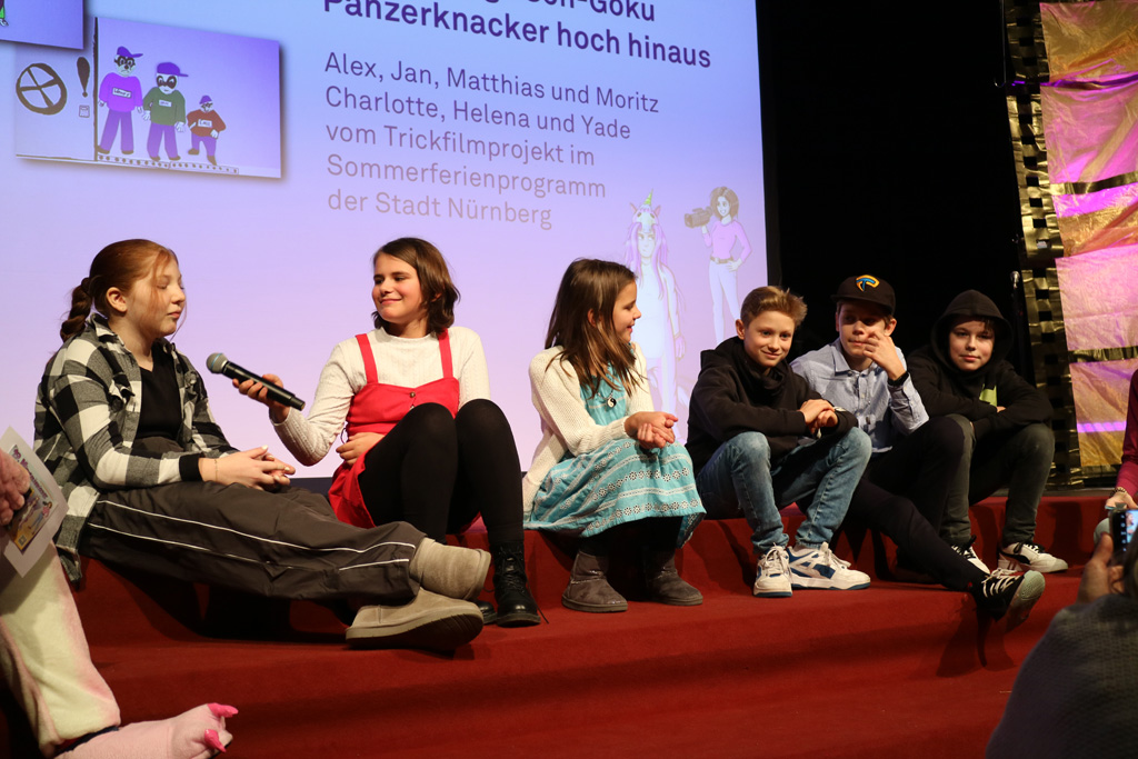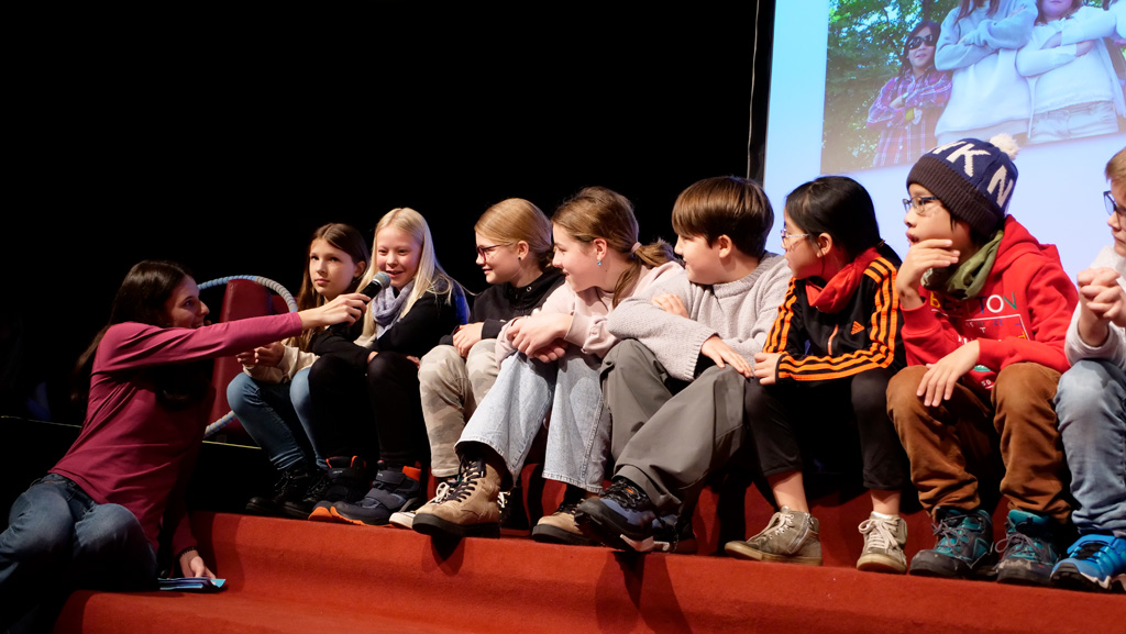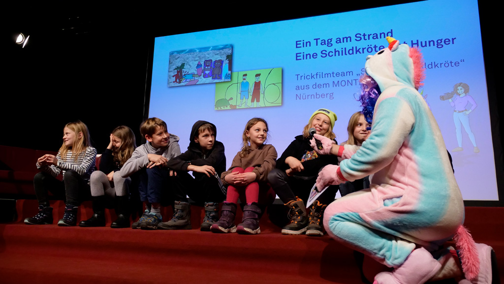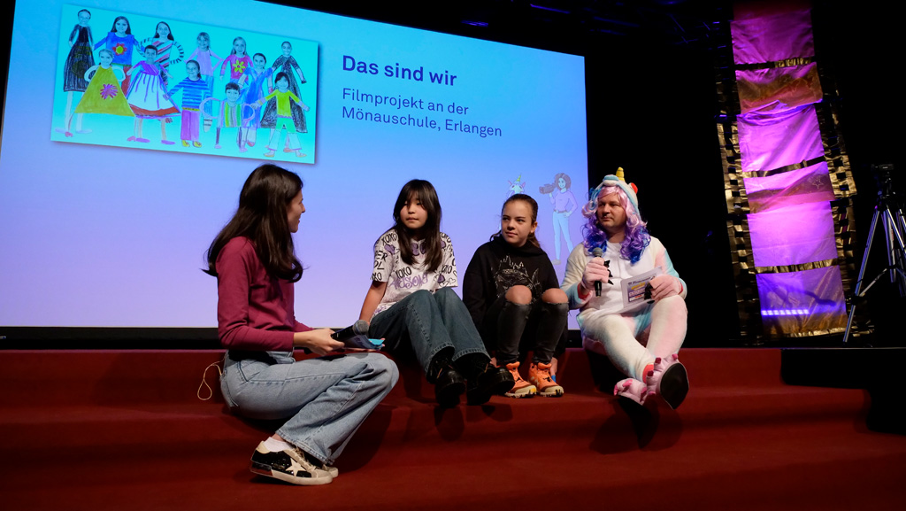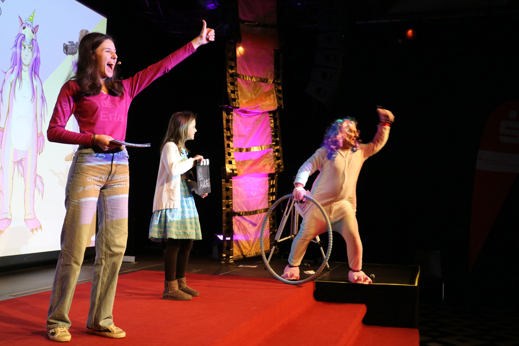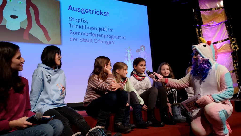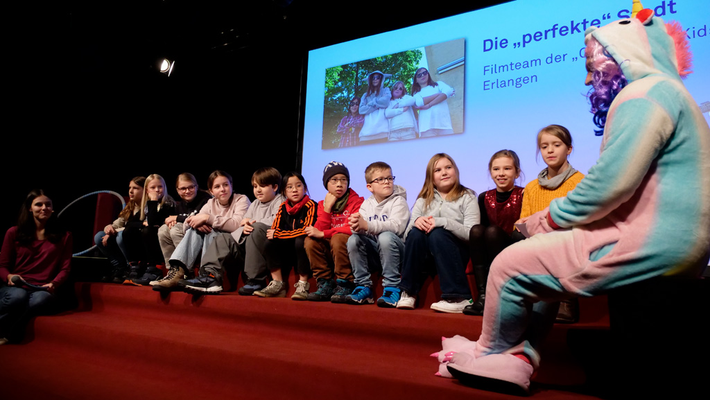 Zahlreiche Filmgruppen berichteten von ihren Filmproduktionen und insgesamt 27 Filme von Kindern für Kinder wurden auf der großen Leinwand präsentiert. Eingerahmt in einen actionreiches Moderationsprogramm, bei dem die Kinder im Saal zum Mitmachen animiert wurden, und laut bei der T-Shirt-Challanges der VIPs mitzählten.