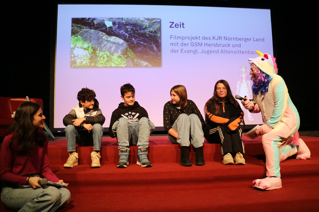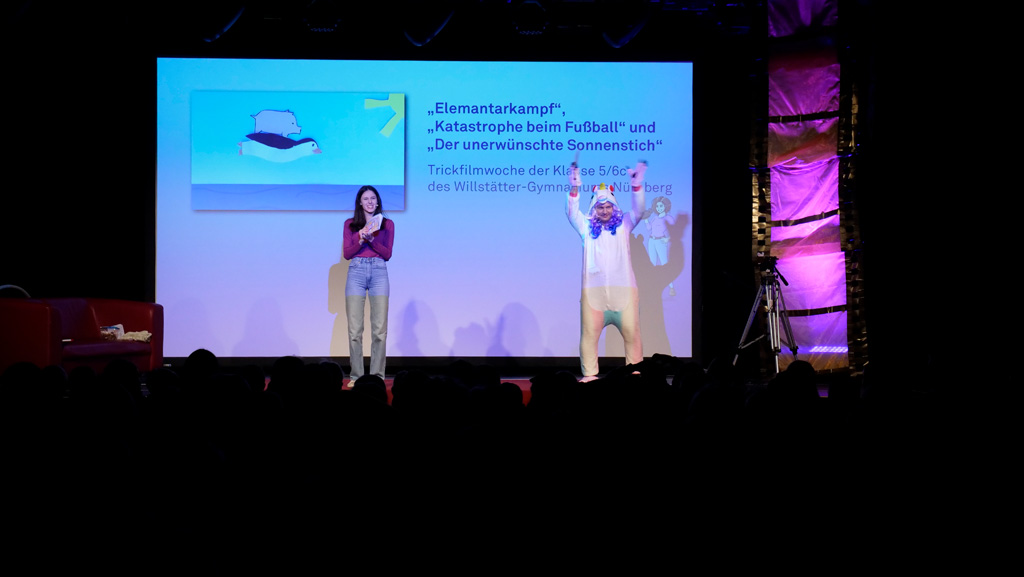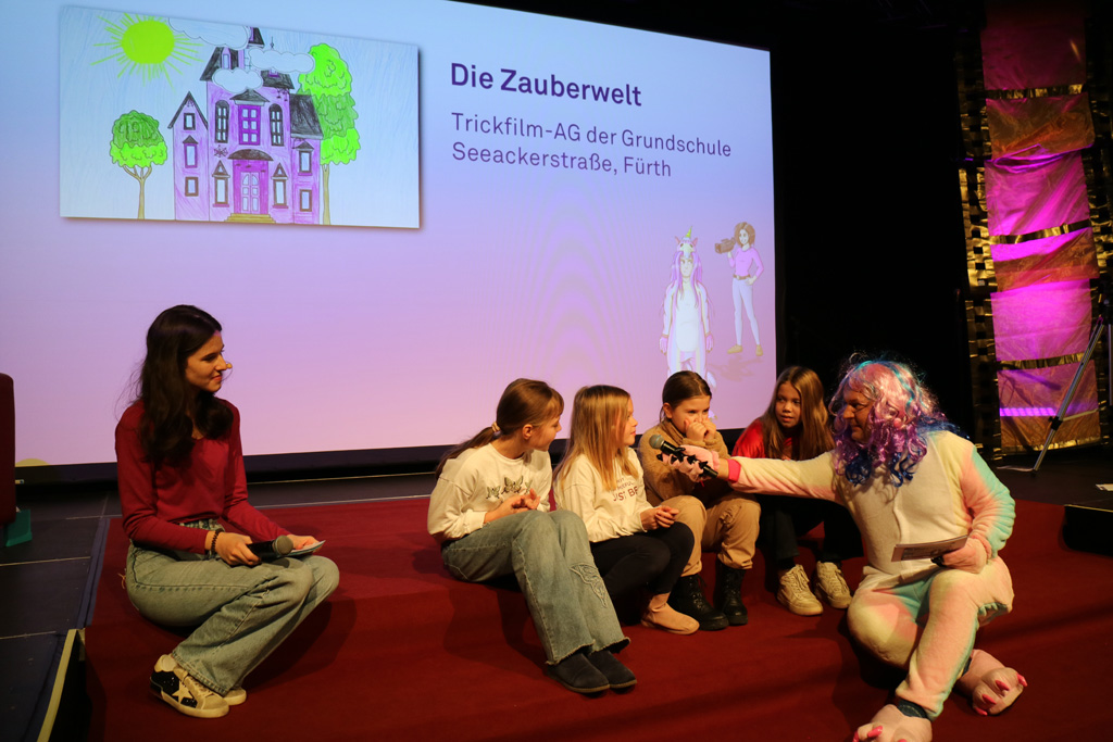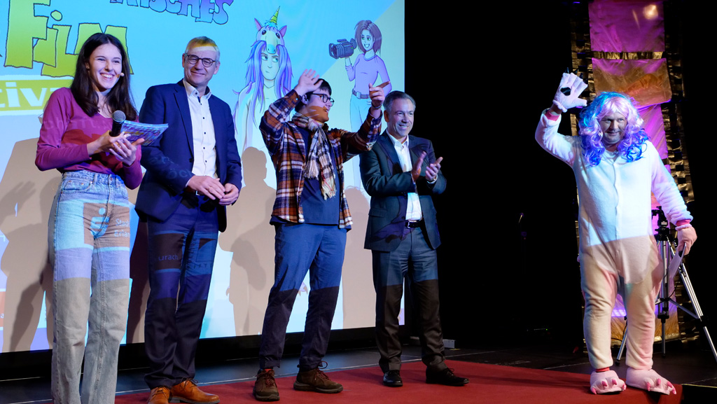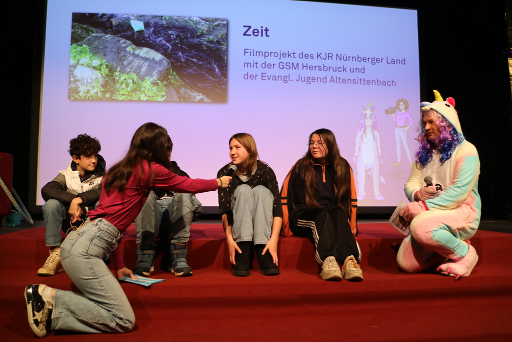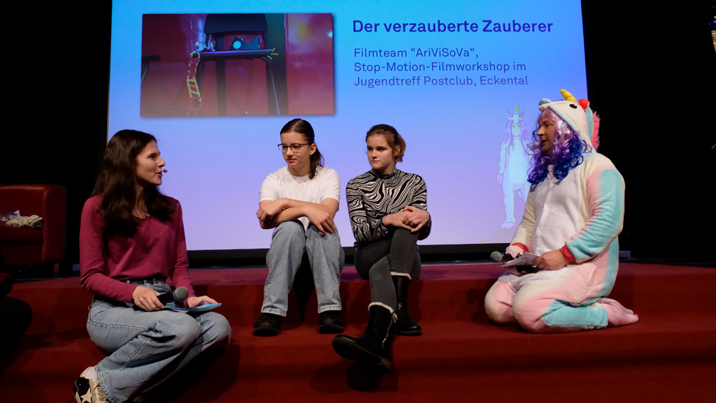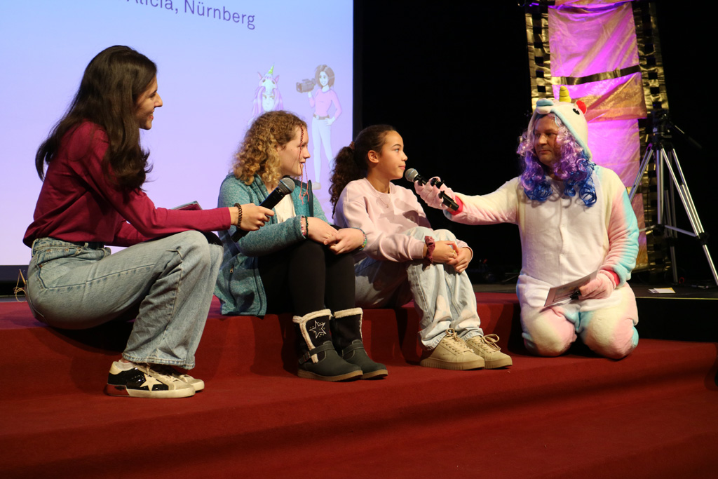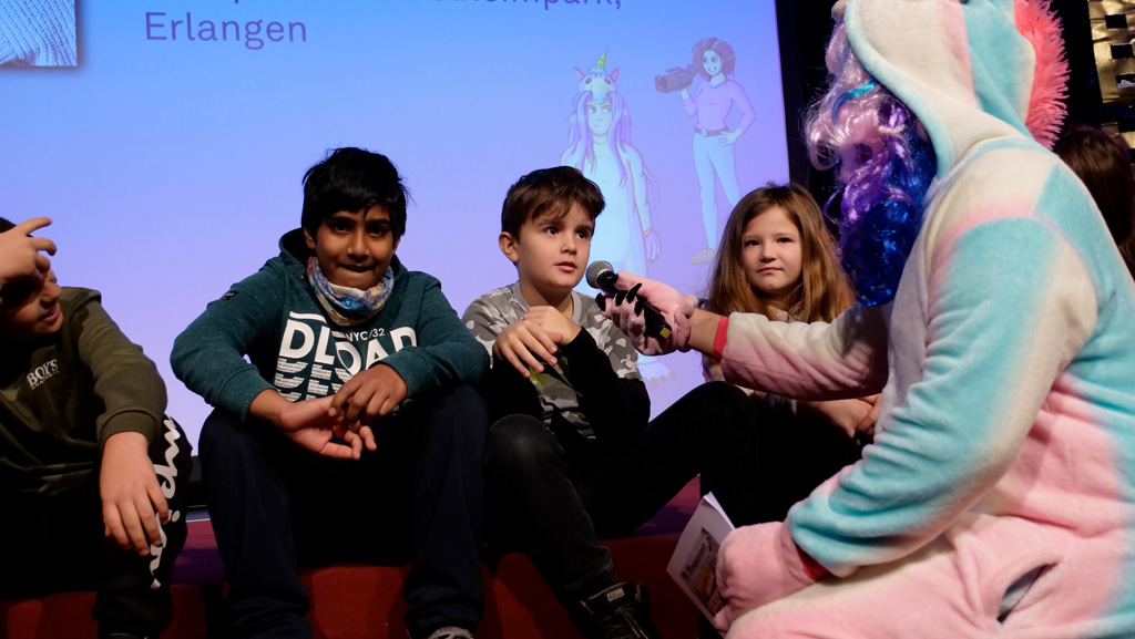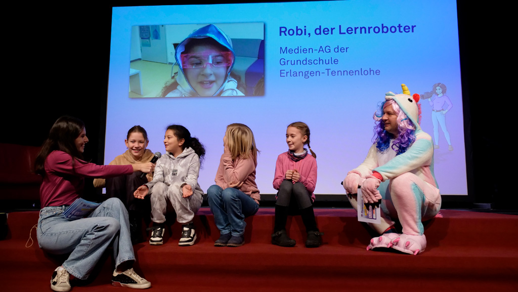 Zahlreiche Filmgruppen berichteten von ihren Filmproduktionen und insgesamt 27 Filme von Kindern für Kinder wurden auf der großen Leinwand präsentiert. Eingerahmt in einen actionreiches Moderationsprogramm, bei dem die Kinder im Saal zum Mitmachen animiert wurden, und laut bei der T-Shirt-Challanges der VIPs mitzählten.