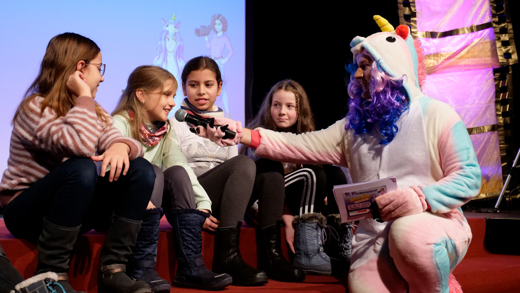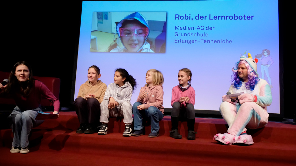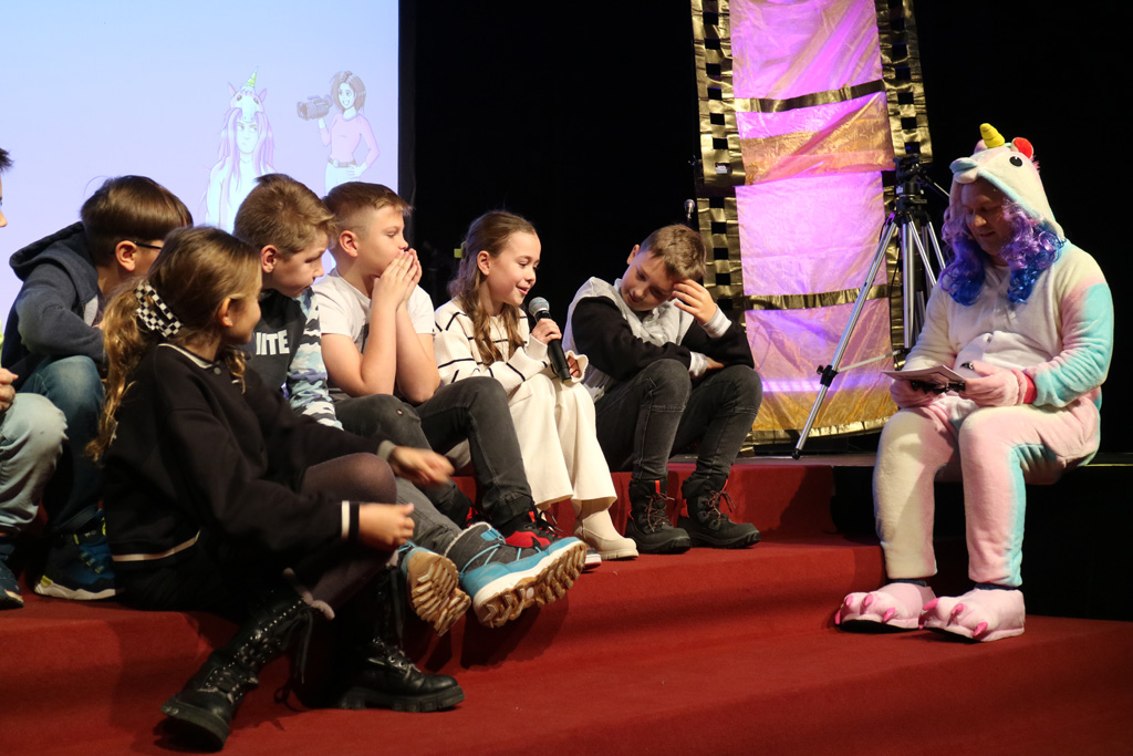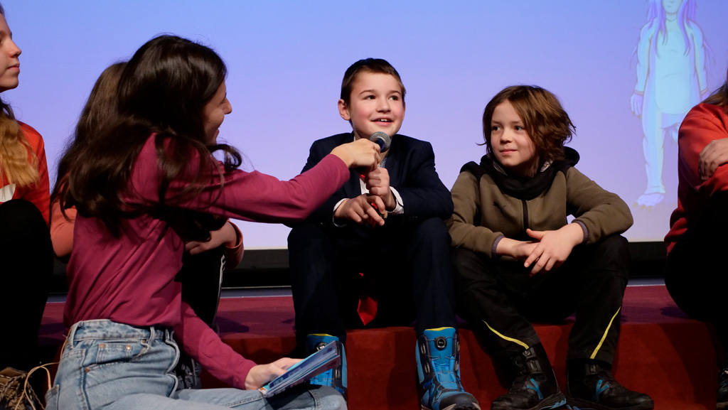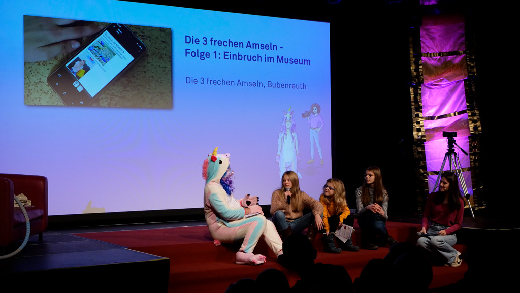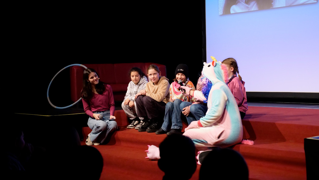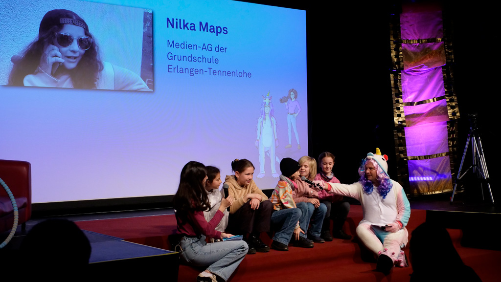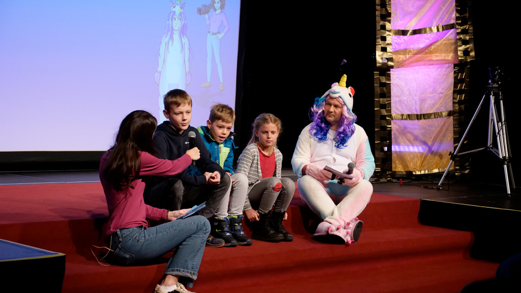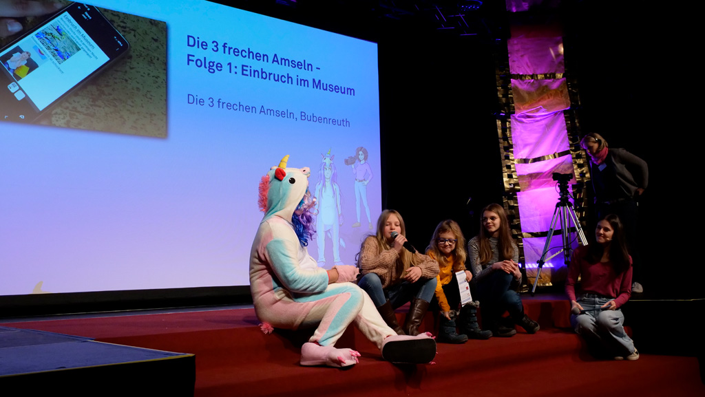 Zahlreiche Filmgruppen berichteten von ihren Filmproduktionen und insgesamt 27 Filme von Kindern für Kinder wurden auf der großen Leinwand präsentiert. Eingerahmt in einen actionreiches Moderationsprogramm, bei dem die Kinder im Saal zum Mitmachen animiert wurden, und laut bei der T-Shirt-Challanges der VIPs mitzählten.