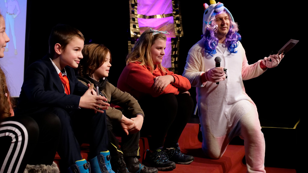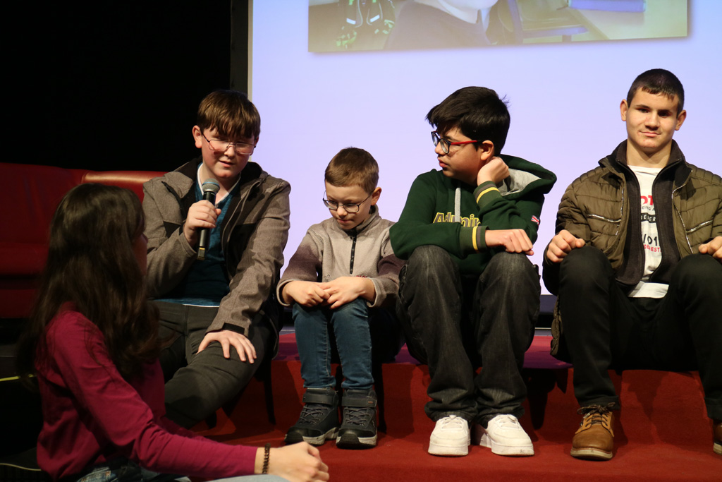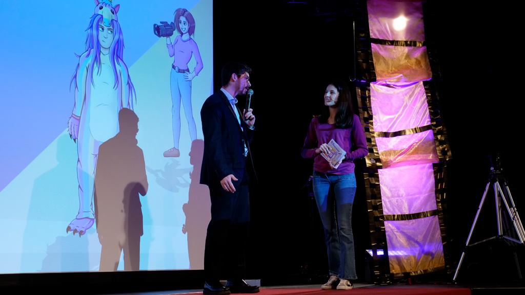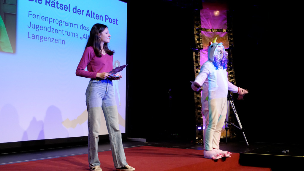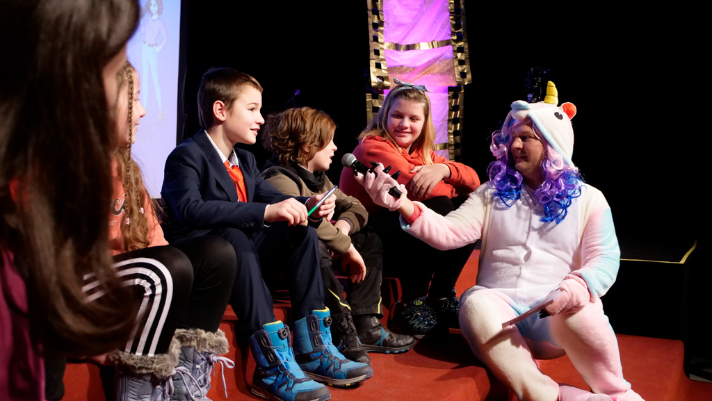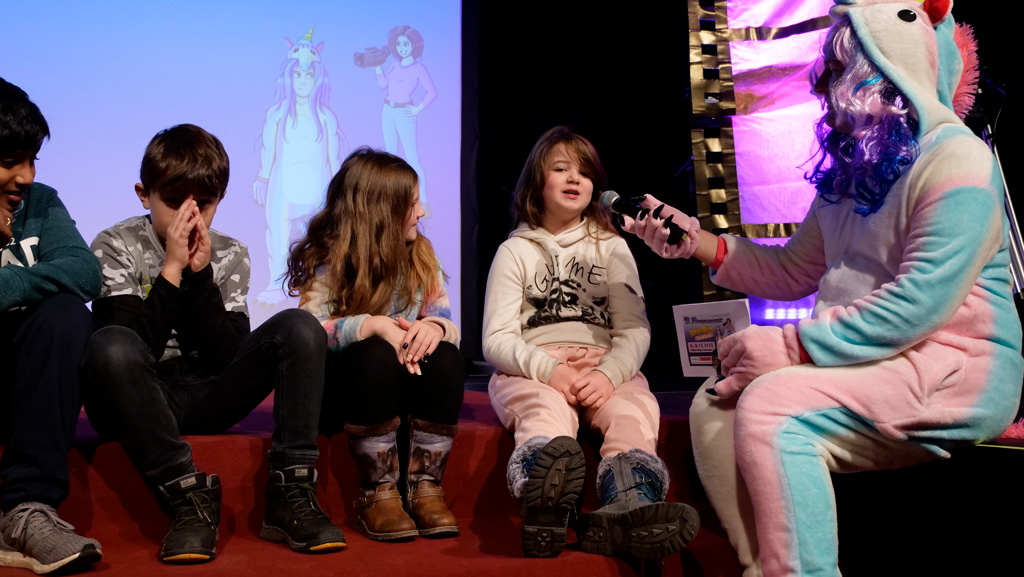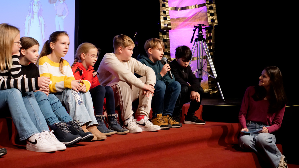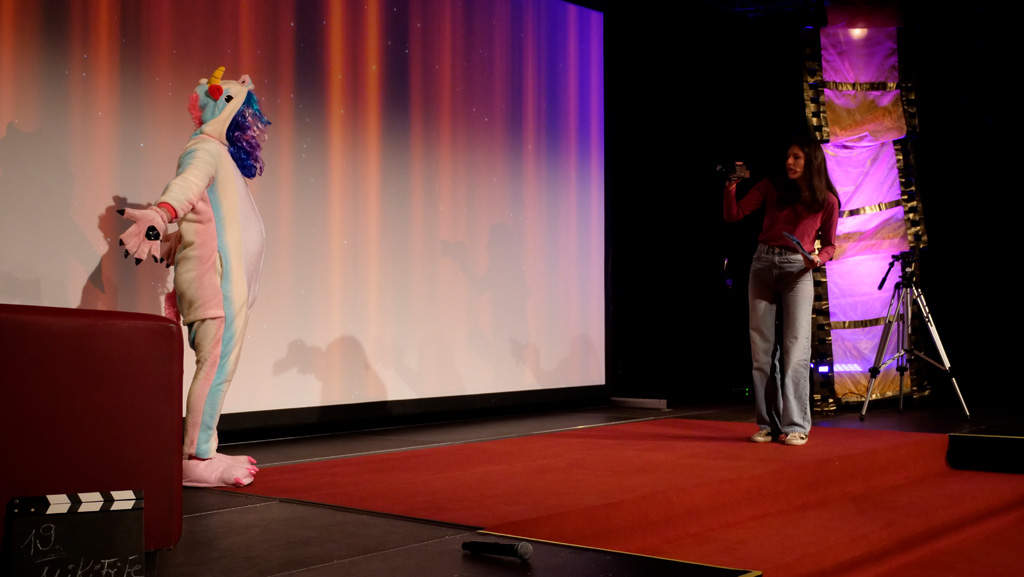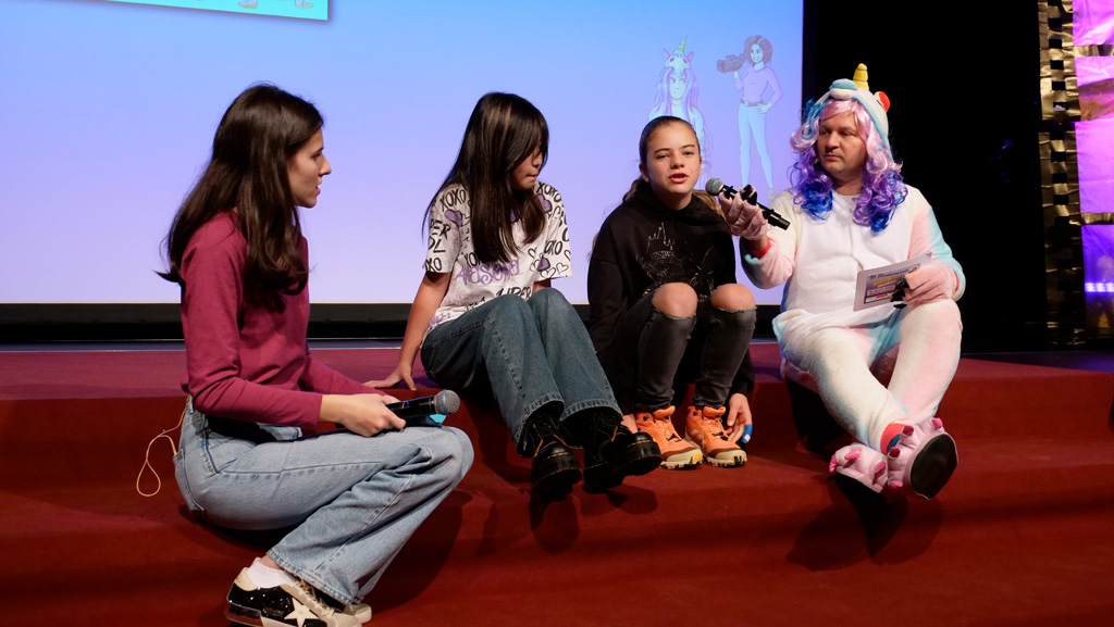 Zahlreiche Filmgruppen berichteten von ihren Filmproduktionen und insgesamt 27 Filme von Kindern für Kinder wurden auf der großen Leinwand präsentiert. Eingerahmt in einen actionreiches Moderationsprogramm, bei dem die Kinder im Saal zum Mitmachen animiert wurden, und laut bei der T-Shirt-Challanges der VIPs mitzählten.
