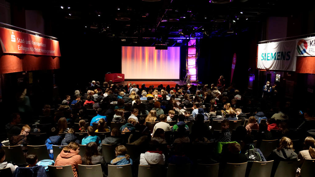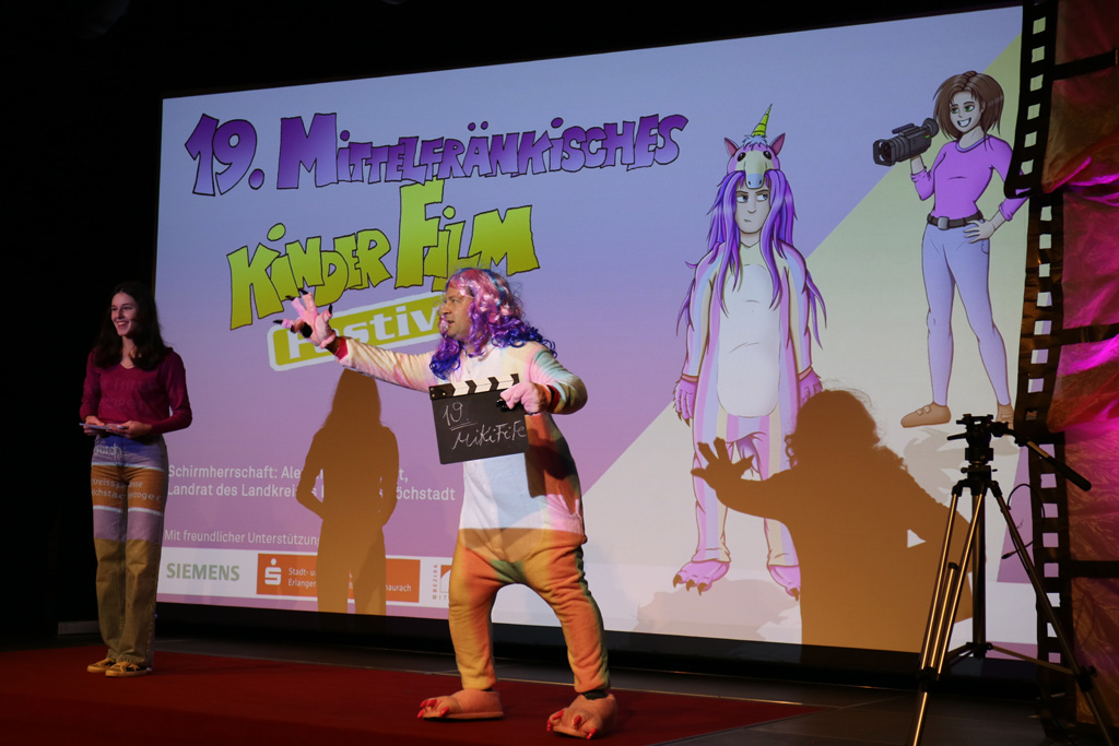 Vom 06. bis 08. Dezember 2023 fand im E-Werk Erlangenzum 18. Mal das Mfr. Kinderfilmfestival statt. MiKi und FiFe begrüßten an drei Tagen über 1200 kleine und große Filmfans sowohl auf der Bühne als auch im Publikum.