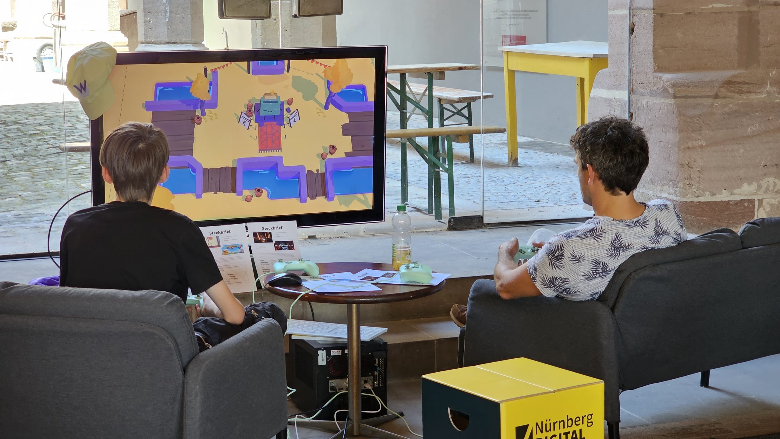 Zum einen findet den ganzen Tag der GameJam statt, der schon am Vortag angefangen hat und der als eigenes Event im nuedigital-Programm existiert.