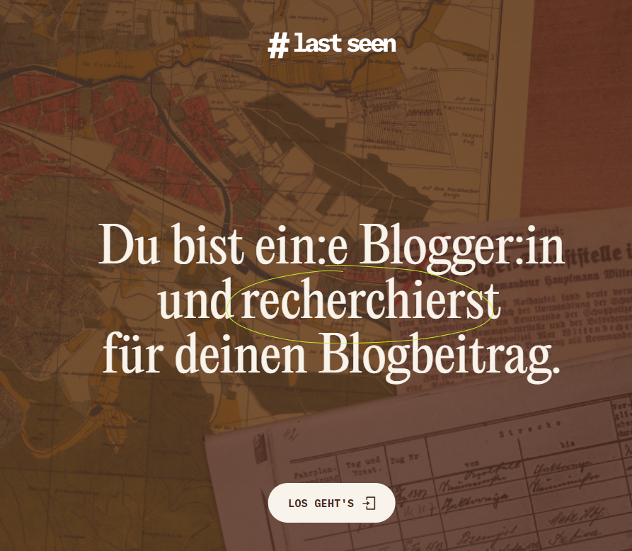 Mehr als 200.000 Menschen sind zwischen 1938 und 1945 aus dem Deutschen Reich deportiert worden. Hiervon sind Fotografien überliefert. Fotos, die das Geschehen, die Verfolgten, die Täter:innen, die Beteiligten zeigen. Das Projekt #LastSeen hat sich zum Ziel gesetzt, erstmals alle Bilder der Deportationen aus dem Deutschen Reich zu erfassen und digital  zu veröffentlichen. Zudem haben sie  ein  Online-Game entwickelt, in dem man eigenständig zur Geschichte der Deportationen und der Fotos recherchieren können. Zudem kann man im browserbasierten Entdeckungsspiel in die Rolle eines Bloggers oder einer Bloggerin schlüpfen, die ihre eigen Recherchen zu dem Thema aufstellt.