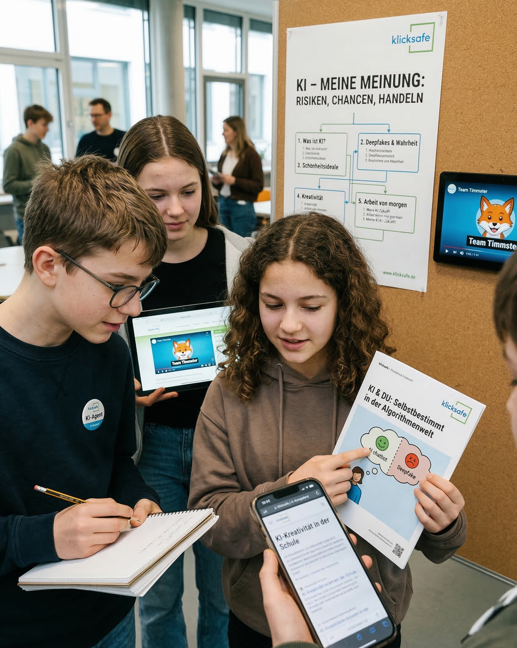 All diese Aspekte greift das neue Unterrichtsmaterial von klicksafe auf. In sechs niedrigschwelligen Einheiten empfohlen ab der 7. Klasse werden die Jugendlichen dazu aufgefordert, sich eine eigene Meinung zu KI und ihren Herausforderungen zu bilden.