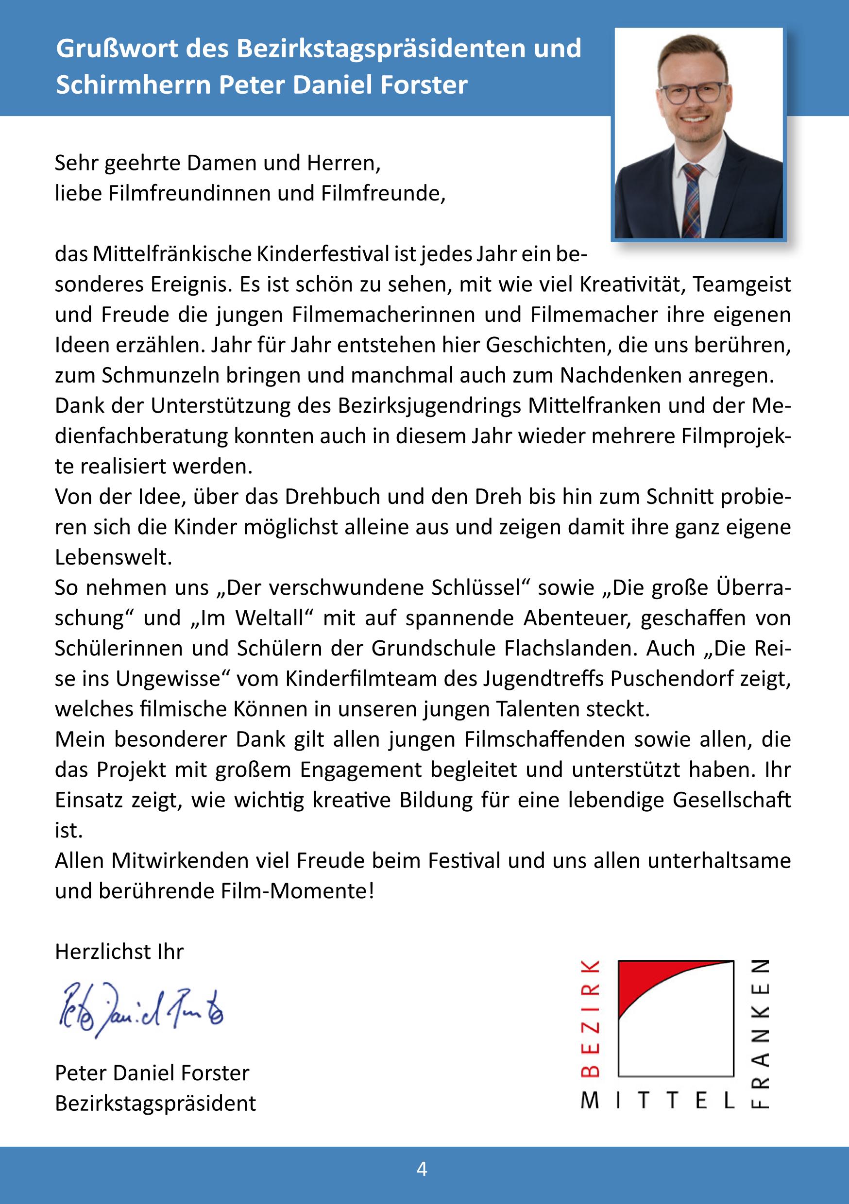 Grußwort des Bezirkstagspräsidenten Peter Daniel Forster zum Wettbewerb