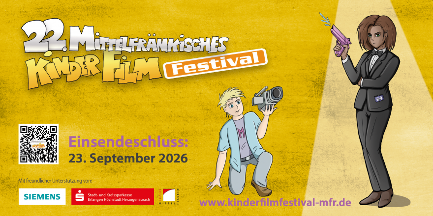 Her mit euren Selbstgedrehten! Zum 22. Mal suchen wir eure Agentengeschichten, Trickfilme, Krimis oder YouTube-Clips für den Wettbewerb zum Mittelfränkischen Kinderfilmfestival!