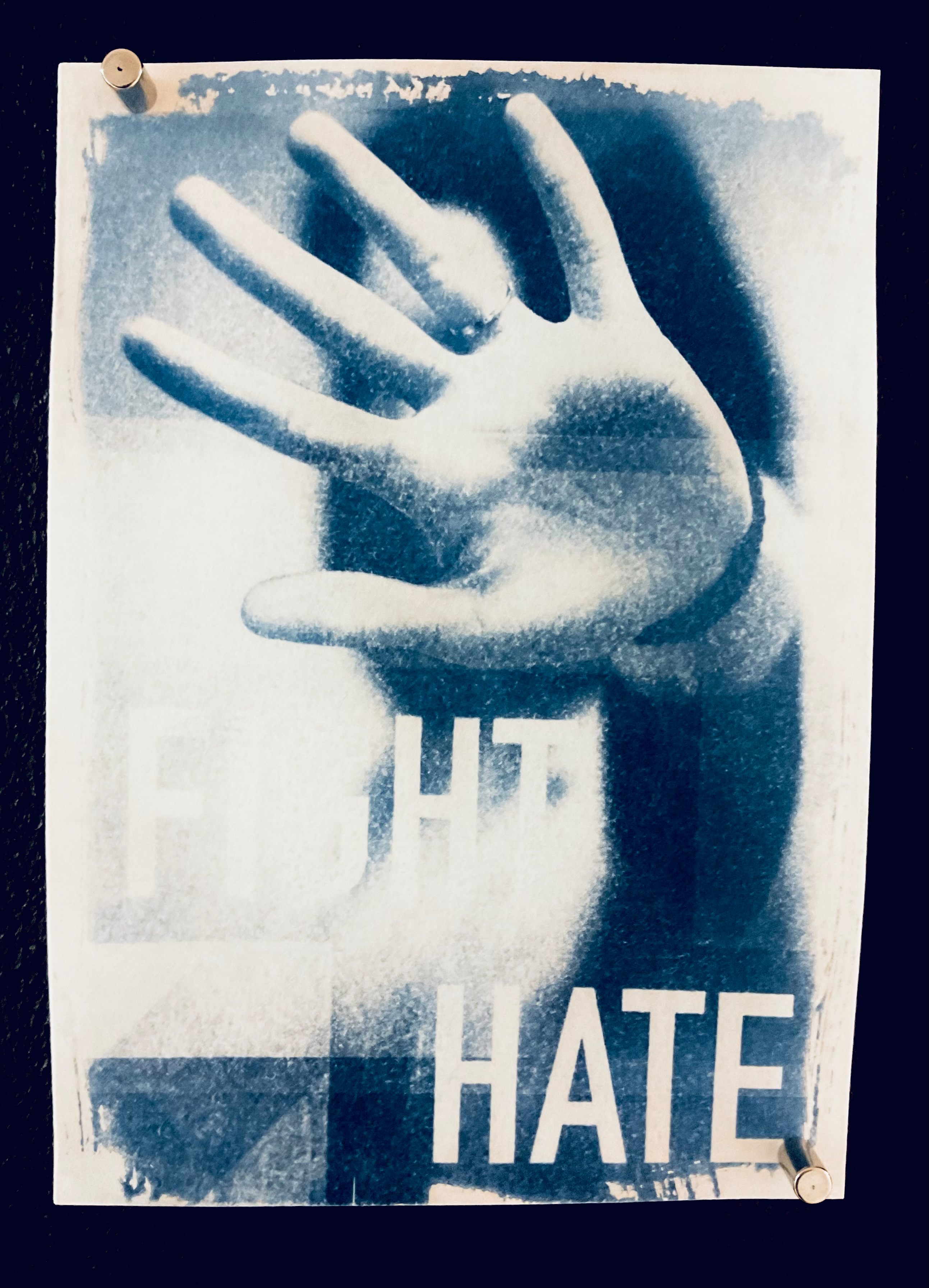 • Optional: Man kann mithilfe eines Bildbearbeitungsprogramms aus jedem Foto ein Negativ erstellen. Dafür den Effekt „Invert“ bzw. umkehren benutzen und unbedingt die Farben auf schwarz/weiß umstellen (Farbfotos können mit dieser Methode leider nicht dargestellt werden) und dann das bearbeitete Bild auf Folie ausdrucken. Das fertige Foliennegativ auf das UV-Licht empfindliche Papier legen und belichten (siehe oben).