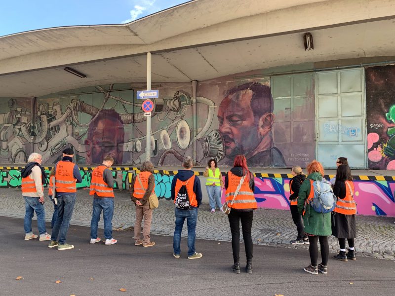 Das Highlight von Tag eins war der Besuch der Mural Harbor Gallery, einem bedeutenden Projekt für Urban Art, Graffiti und Murals. Der Schwerpunkt der Führung lag auf Kunst von Frauen. Wir entdeckten Werke, die gesprayt, gepinselt oder getupft waren. Tupfen ist dabei eine interessante Methode, um der schnelllebigen Welt etwas entgegenzusetzen – es geht um Entschleunigung. Im Gegensatz zur heutigen Informationsflut dauert es bei dieser Technik lange, bis das Kunstwerk und die Botschaft der Künstlerin vollständig entstehen. Also eine schöne Gelegenheit, sowohl für die Künstlerin als auch für die Betrachter*innen, innezuhalten und die Entschleunigung zu genießen. Übrigens: Wer sich für diese Jugendkultur interessiert, kann am 2. November am “Fachtag Hip Hop – Evolution of Education: Die transformative Kraft der Hip Hop Kultur” teilnehmen: Weitere Infos und Anmeldung